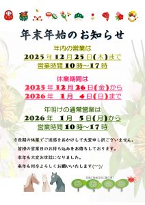 年末年始の兼ね合いで日曜営業の日程が通常と変わっております。